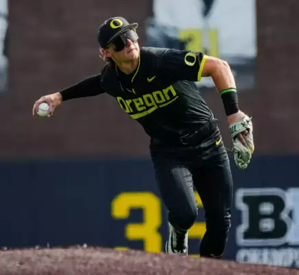 16. Michigan run-rules Oregon 10-0 to take the first game of the series.