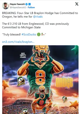 An LB joins the OBD Flock. https://247sports.com/college/oregon/article/oregon-lands-new-commitment-from-four-star-lb-braylon-hodge-258143585/?source=column&lctg=26140&eid=c7d8647c6247db8d08c59fe44bc30380a147aa90b9e3
