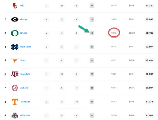 This moves Oregon up to No. 3 in the nation for the 2026 class. Note we have the fewest commits in the top-9, and the best average.