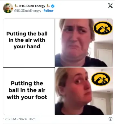 I was under the impression that Iowa plays zone defense and does a great job of eliminating explosive plays making a team drive down the field. For them to come out and play man with no safety help would definitely show disrespect to Oregon’s passing game (even if it has taken a step back this year). “Iowa’s base structure is “Cover 8,” which in short is a conservative approach designed to limit big plays − with eight of the 11 defenders dropping into pass coverage. But that can easily morph into a “Cover 3” (with three defenders – typically two cornerbacks and one safety – responsible for one-third of the deep part of the field).” https://www.hawkcentral.com/story/sports/college/iowa/football/2025/06/19/iowa-football-defense-phil-parker-defensive-coordinator-kirk-ferentz-hawkeyes/84154081007/ Phil Parker has been at Iowa for 27 seasons and 14 as defensive coordinator. Iowa’s coaching stability reminds me of Oregon’s Bellotti era.
