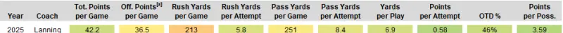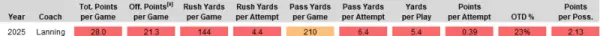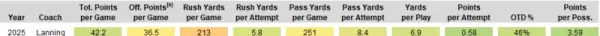 Agreed, it's not been good Quick clarification on the stats below: "Off. Points per Game" is points scored by offense in regulation (i.e., no D/ST/OT points) Offense including non-conference games: Offense conference games only: