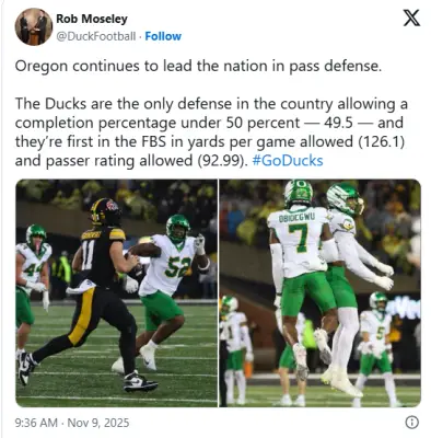 All of these observations is simply because Oregon has been ready to compete with the best in the nation for quite awhile now. Since Slick Willie we have recruited, and developed NFL caliber players. (Just watch one weekend of NFL football and see how many names you hear from Oregon). The problem was being "locked in" the PAC12, notorious for getting no media respect and cannabilizing each other, especially "after dark". Where a two loss Alabama, Georgia, Ohio St still had a shot at the 4 team playoff, the PAC was never given the same consideration. Even One loss was viewed "as suspect", depending on who it was against (wash st., cal, etc.). So, "TV" collapses the PAC and Oregon/Washington (thrown a bone) to come and play with the B1G boys. The chance Oregon had desperately been looking for, for years, to legitimize the quality of the program. With a new and ambitious coach, Oregon took its opportunity and ran with it! (Especially last week, all over Iowa😁). This was not suppose to be. Because of the "narrative" about the PAC, and it's "flashy" perennial leader Oregon, and that Oregon was just that....flash and no bite and we have, resoundingly, repeatedly, made them "eat their words". And this has and continues to leave a bad taste on their mouths. OBD is NOT making friends in their new conference and in fact painting a huge target on their backs (Indiana game comes to mind), something I believe OBD haven't quite come to realization and/or grips with. But they will. Ten years from now ( With D. Lanning still leading the way) after several conference championships and a Natty or two all anyone will think about the Ducks is, "Boys...this is the game of the year for us...beat Oregon and you will prove we have become legitimate contenders". Because you will have to be "legitimate" to beat OBD! 🦆🏈🪨's