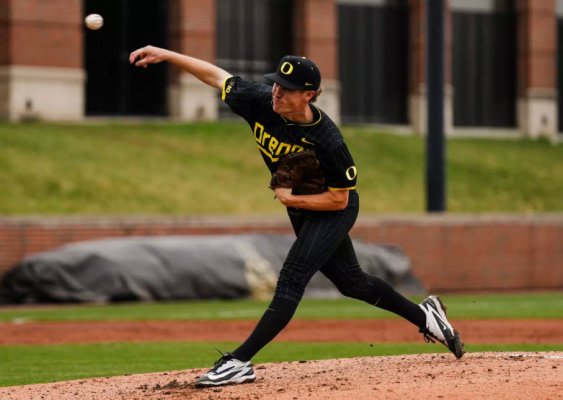 8-3 Ducks after three innings. That wind is blowing everything out of the park, and no lead will be safe. Brayden Jaksa hit opposite to RF, and the ball hopped weird past the fielder to give him a triple. Ryan Cooney nailed a pitch on a line to deep CF/RF gap to score Jaksa, and put Cooney on second. Drew Smith drives a liner to RF to give him a hit and put Cooney on 3rd. A ground-out traps Cooney going to home for an out, but it puts the batter, Angel Laya on first and Smith on second. Then the RS Freshman in for the injured Dominic Hellman at DH, the big-guy from Utah....Naulivou Lauaki, blasted a 3-run homer that was no doubt over the LF wall. Whew! We got a new hitting stud! Will Sanford gave up a double, but got his first scoreless inning. He and the pitching staff are adjusting, as you cannot throw fastballs and look for them to miss. Because when they connect--it is not just a hit--it is out of the park today with that vicious wind. So he is pitching a ton of curve-drop balls that are sweet to see, and then mixes up fastballs on the outside corners. So far--so good!