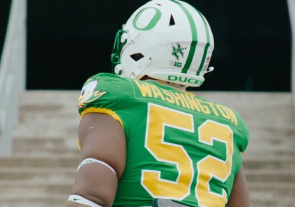 I didn't love the uniforms at first, probably because Amari Washington isn't the best fashion model. (He looks exactly the way you want him to look-like a trench warrior ready to do the dirty work!) But after seeing the video reveal, I'm convinced the helmets look bad butt (Pic 1). And I do recall, you can win big games wearing white pants (Pic 2) Go Ducks!