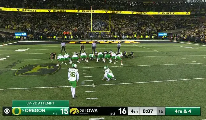 Atticus Sappington wins Ducks Wire Player of the Game vs. Iowa Hawkeyes The Oregon Ducks came into Saturday’s game against the Iowa Hawkeyes facing a major uphill battle. They were on the road, decimated by injuries to their offense and playing through some tough weather conditions. Head coach Dan Lanning was hoping that this game could be a springboard to getting his team back to their dominant ways, but it didn’t quite work out that way. The contest turned out to be a low-scoring, defensive slugfest, where both offenses struggled and felt like they could win or lose the game on any given play. It’s normally tough to choose a standout player in such an off game, but that wasn’t the case today. In a rare turn of events, kicker Atticus Sappington will take home the Ducks Wire Player of the Game after connecting on a game-winning 39-yard field goal with just three seconds left in the game.