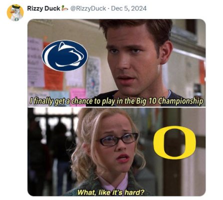 Indiana 20-15 at Iowa - winning TD with 1:28 left 27-24 at Penn St - winning TD with 0:36 left 13-10 vs Ohio St in B1G Championship played 53 miles from campus There is an old saying about luck resulting from preparation meeting opportunity. Hoosiers were certainly prepared when they visited Autzen. Less sure about ALL the other games, but they gave themselves opportunities with a very mature roster in terms of age and experience. Hoosiers 2026 schedule looks like 1-2 losses at most? Who you play, where, has always been a factor. IF Ducks had proceeded to go Miami, Atlanta, Miami in a CFP run I'm doubtful that would have been duplicated in terms of travel during the CFP anytime soon. Preparation requires overcoming adversity. Indiana was also "lucky" on the injury front. That is rare too. Sometimes it is just unexplainable destiny.