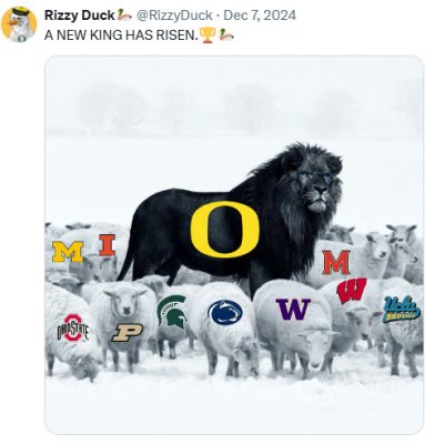 Mr. Marsh, thank you for making Friday more mellow 😁. "... fair is foul, and foul is fair ..." Macbeth September 27, 2025 - Beaver Stadium - State College, PA - Was Whittington's knee down? October 11, 2025 - Autzen Stadium - Eugene, Oregon - With under 13 minutes left to be played, Frosh Phenom Brandon Finney, Jr. returns an interception thrown by Fernando Mendoza 35 yards to tie the game 20-20. Autzen Stadium erupts!!! Fernando shakes it off, and Indiana scores 10 points after the Pick-6, shuts out the Ducks, and wins its first road game against a top 5 opponent since 1967. November 8, 2025 - Kinnick Stadium - Iowa City, IA. - A putrid punt snap gives OBD an early 2-point lead. In a deluge, Ducks win 18-16. The football gods giveth, and they also crush the hopes of football fanatics from coast to coast. "Bowls, Polls, and Tattered Souls." Stewart Mandel nailed it. Speaking of Macbeth, in 'Dan Lanning, Watching the Grass Grow, Season V', does the hero have to reach great heights only to die a gruesome death in the final act?😏 Danno, in 2026, please rewrite the final scene, please. 🙃 Thanks again, Don, for reminding us of the thin line between 'the thrill of victory, and the agony of defeat.'