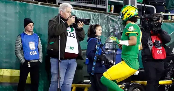 2. A long-time photographer for many universities, Associated Press, and on occasion, FishDuck.com....Gary Breedlove, was shooting the Playoff game last Saturday. Recall the touchdown when Dante Moore ran to the near corner of the end zone for the touchdown? Gary took a string of pictures of Moore coming RIGHT AT him, and did not budge. At the last moment Dante sidestepped Gary, and went back to celebrate with the team. Meanwhile Kenyon Sadiq came up to Gary and said, "You didn't move!" Gary, replied, "no, because his reflexes are a lot faster than mine." All us Greybeards can identify with that! Sadiq chuckled and joined the celebrating...