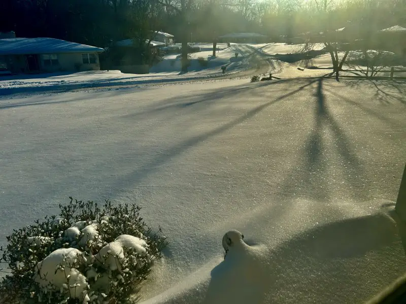 They high Monday was 11° where I live in Indiana. From the ground to the porch is 30" ... solid snow The English Bulldog statue is sitting on the porch.
