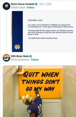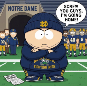 Strike while the Dome is hot! Cancel ND without delay. Many pac-12 teams have open dates. No reason to inflate the postseason MIA (😁) Domers schedule. To Wit: In the fall of 2026, the Gurus of Grapevine No. 1 Hosers will battle No(t) Texas - The Somewhat Ticked Off Green, Howard's (Endangered) Bisons, and some Western Kentucky guys who, like Uncle Bill, have a still on the top of a hill.