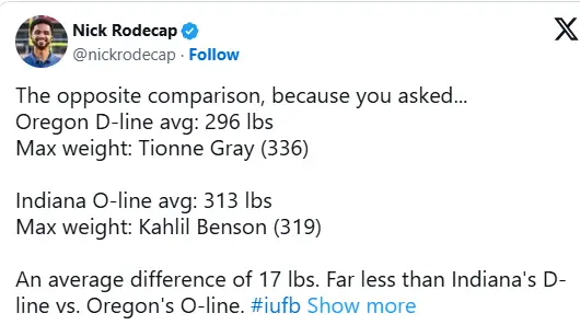 Will the size of linemen in the trenches make a difference? Oregon Ducks On SIIndiana Coach Stirs Up Oregon Ducks Size Controversy On S...One of the most impressive aspects of the No. 3 Oregon Ducks 2025 squad is the efficiency and effectiveness of their offensive line, which saw only one returner