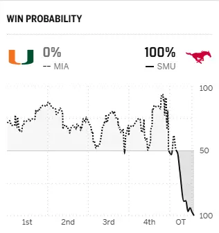 7 hours ago7 hr No. 2:26 left, leading 20-17, ball on SMU 49 - pass play2:22 left, ball on 50 - pass playIF Miami had run the ball, they would have taken time off the clock.Miami punts on fourth down.Following punt, SMU has 2:09 left, 90 yds from scoring.0:28 left, SMU kicks FG to tie from Miami 21 yd line of scrimmage.IF Miami had run the ball, SMU would still have used a couple time outs, BUT more time would have elapsed before the SMU timeouts. Maybe SMU has a longer FG attempt after getting possession back?