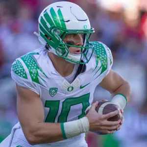 September 28, 20223 yr Moderator No. Very good article, Joshua, and an accurate read on Nix. My observation is that the Oregon offense under Dillingham has him playing to his skill set, which is accurate reads, short to medium range passes and controlled runs, planned off the RPO or scrambles when he needs to get out of the pocket. Nix's long ball is not his strength. In reviewing passing attempts over 30 yds, he more often than not will slightly over or under throw the ball. Luckily most of them are catchable. The long completions to Franklin and Hutson at WSU required each to break stride just a bit. One of the long passes in the BYU game led the receiver just a bit too much and he wasn't able to reach the endzone and the great catch by Franklin was a bit behind him. This tendency to underthrow was the reason the first pick in the Georgia game occurred, albeit to a very talented DB that played it perfectly. I'll bet Smart coached his secondary to that tendency given his familiarity with Nix. On the flip side, Bo's TD pass to Franklin late in the WSU game was on a dime, and the 4th and 2 completion to Irving was perfect. It was a do or die play and the reason Oregon came back to win. Both of those passes were in the 25-30yd range where Nix is most effective. With the O-line giving him a relatively clean pocket, Nix has the time to launch down the field, but his real strength is that medium pass. He is really accurate on those and can pick apart a defense. Oregon has the speedy receivers to get significant YAC, so that medium game is money.